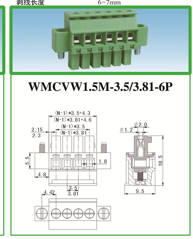 WMCVW1.5M-3.5/3.81-6P PCB線路板接線端子